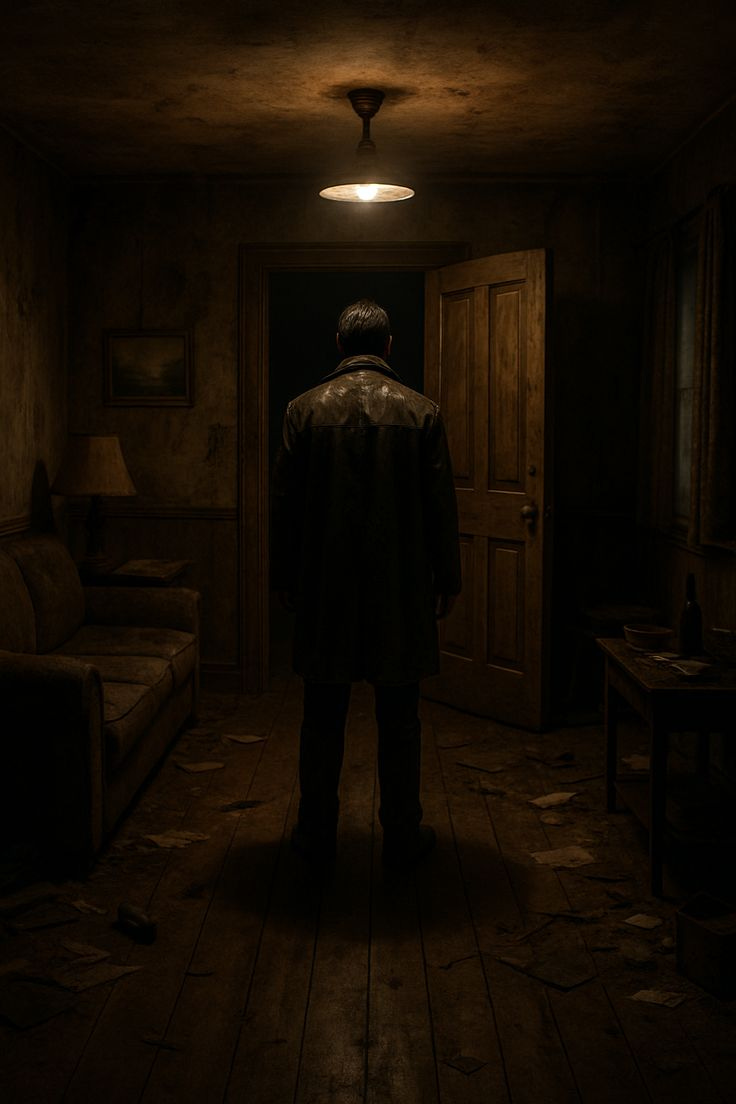 It was winter, around one in the morning. Darkness and haze surrounded his home, the last house at the end of the street, with no neighbors close by. Inside, the room was dim and silent except for the ticking of a clock. The weak light barely reached the corners.